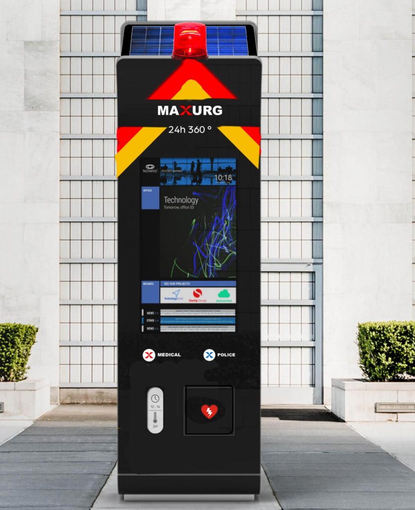 Cette borne intelligente, connectée au bâtiment intelligent «ARCH IN MOTION 360°», fournit aux utilisateurs des informations constamment mises à jour via l’écran tactile intégré, des demandes immédiates d’assistance médicale et de sécurité, la mise à disposition d’un défibrillateur sur demande et un ensemble complet de capteurs (qualité de l’air, température, humidité, etc.). Elle permet également la communication avec l’administration et tous les services du complexe.