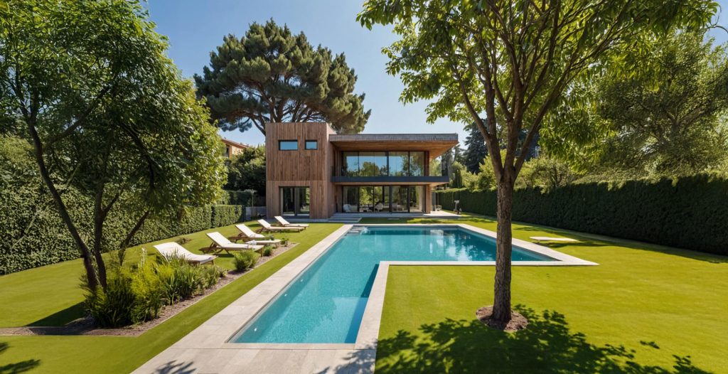 Trois ou quatre chambres selon choix, salon deux sdb, cuisine, un espace cuisine d’été, un espace terrasse couverte et découverte, un jacuzzi et un jardin privatif.