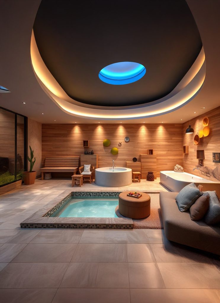 Vous aurez aussi un espace enfant pour les plus petits et un espace wellness dédié aux biens être (sauna, hammam, jacuzzi, spa, massage) et enfin un espace soin et santé pour les bobos.